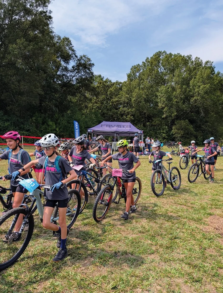 “Almost all girls love to ride bikes when they’re little, just like boys do,” said Shana Rogers, a coach for FayMTB and the team’s GRiT coordinator. “At some point, they’re either told girls don’t do that, or they just don’t stay with it. But if you can catch them at the right age, you can show them it’s perfectly fine for girls to ride bikes. You don’t have to stop. You can do everything else you want. You can have fancy nails, eyelashes. You can be a girly girl and still ride a bike.”